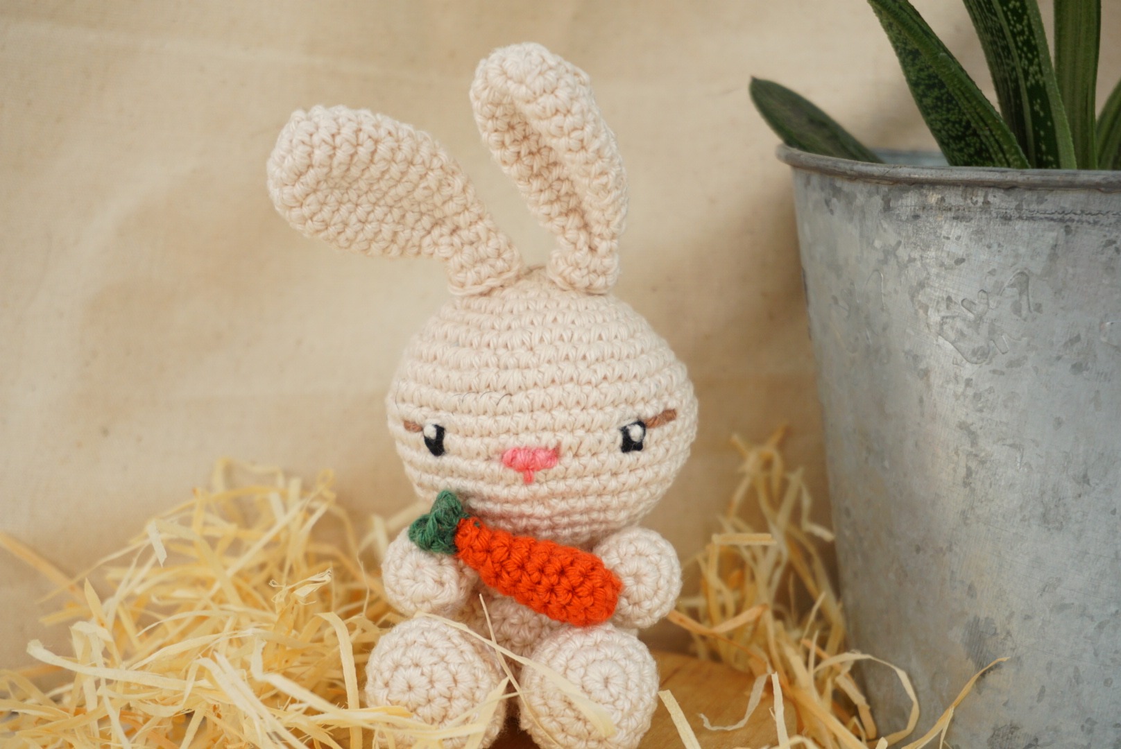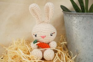 Un adorable petit lapin avec sa petite carotte.